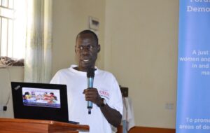 Bosco Nek, presenting a citizens’ issue paper on the electoral process in Masindi.