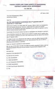 The parish chiefs referenced an earlier communication dated January 20, 2026, in which they requested the district to process their PDC and housing allowances. However, they claim the payments have not been effected even though the district reportedly received funds for the second quarter.
